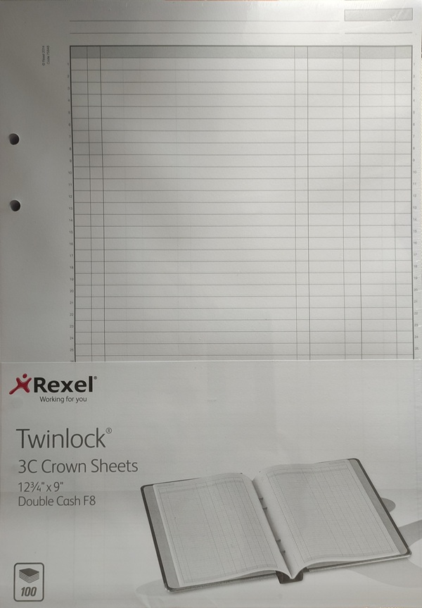 Twinlock Variform and Crown Sheets are used in their respective binders and come as loose leaf. The range Includes the 3C and 2.5C Crown Sheets as Well as The Variform V4, V5 and V8 Variform Sheets. This loose-leaf accounting system can be tailored to fit a variety of tasks, like ledgers, analysis, and cash books. The heavyweight paper stands up to tearing and the numbered rows make cross-referencing a breeze. Plus, there's optional indexing to help keep your records organized. These sheets are pre-punched and designed specifically for use with Twinlock Crown and Variform binders.