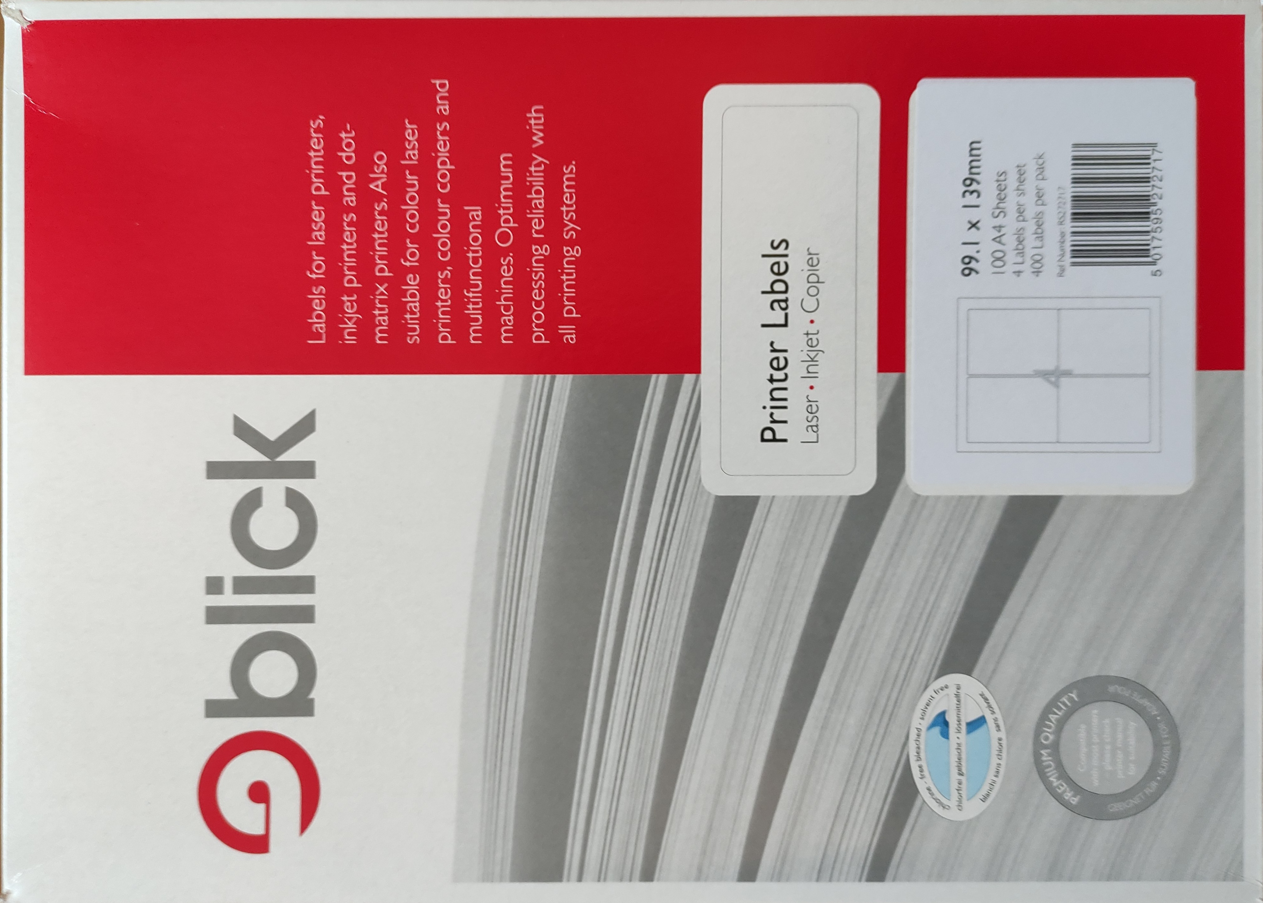 Blick Multipurpose Label 99.1x139mm 4 Per A4 Sheet White (Pack 400 Labels) - 15145SM