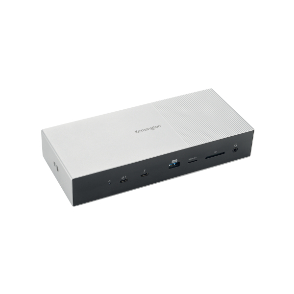 The SD5000T5 EQ Thunderbolt 5 Docking Station is designed for professionals requiring the highest performance. Windows and macOS compatible, the SD5000T5 boosts workflow efficiency with lightning-fast 80Gbps data transfers—and up to 120Gbps for video-intensive usage via Bandwidth Boost. It supports up to three 4K monitors @ 144Hz or two 8K monitors @ 60Hz, ensuring high-quality visuals and smooth multitasking. The single-cable solution delivers up to 140W Power Delivery to your laptop and peripherals—supporting low-latency efficiency and less cable clutter. Boasting 3 x Thunderbolt 5 downstream ports, 1 x Thunderbolt 5 host, 3 x USB-A 3.2 Gen2 ports, an audio jack, dual SD/Micro Card readers, and 2.5Gbps Ethernet, this docking station maximizes productivity with cutting-edge technology. The SD5000T is a composite of 100% post-consumer recycled (PCR) aluminum*. It includes Kensington DockWorks Software and is supported by a 3-year limited warranty. * The outer casing of the docking station is made of aluminum.