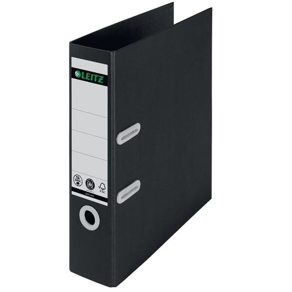Eye-catching, premium quality Lever Arch File made from recycled materials which can be disassembled for complete recycling. 80mm wide and suitable for A4. Climate neutral, 100% recyclable and with FSC & Blue Angel environmental certification. This robust LAF perfectly complements other products from the Leitz Recycle range and is made to last. Modern and contemporary green stationery that will look great at home and in the office. With the new eco friendly Recycle range from Leitz you can both improve your office environment – and the environment of our planet. Pack of 10