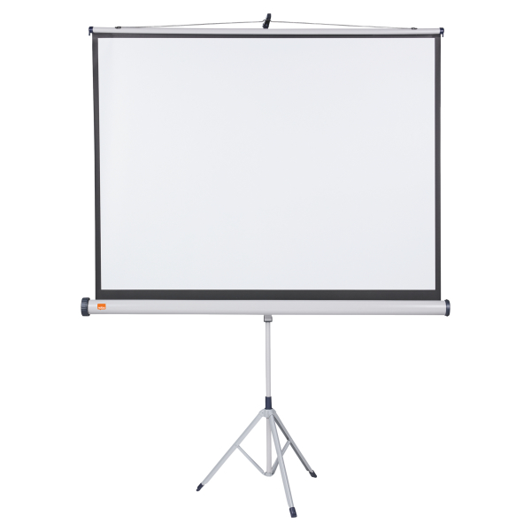 Flexible tripod projector screen. The brilliant matt white surface with black border provides a sharp, detailed image that can be easily viewed by everyone in the audience. The screen can be easily retracted into its housing to protect from damage. 1500x1138mm.