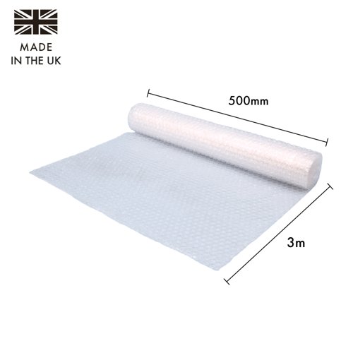 Peace of mind is a limited resource, especially when your business' livelihood depends on brilliant mailing services. Make sure that you have the best possible equipment to work with, by choosing Pukka Post & Packaging. Our bubble wrap range can be used both professionally and at home. It is a great resource for those wanting to protect priceless items, moving houses, businesses shipping online, or for any mailing needs. The air cushioning of our protective bubble wrap rolls protects your contents from shocks, falls and damage, making them safer for postage and packaging. The non-abrasive material won’t scratch surfaces or cause unwanted discolouration, so you can safely use the wrap for long-term storage to keep your fragile items in pristine condition. This bubble wrap measures 500mm x 3m in length and is suitable for packaging small and large objects, our bubble wrap is made in the UK. For professional, safe deliveries...Trust Pukka Post & Packaging.